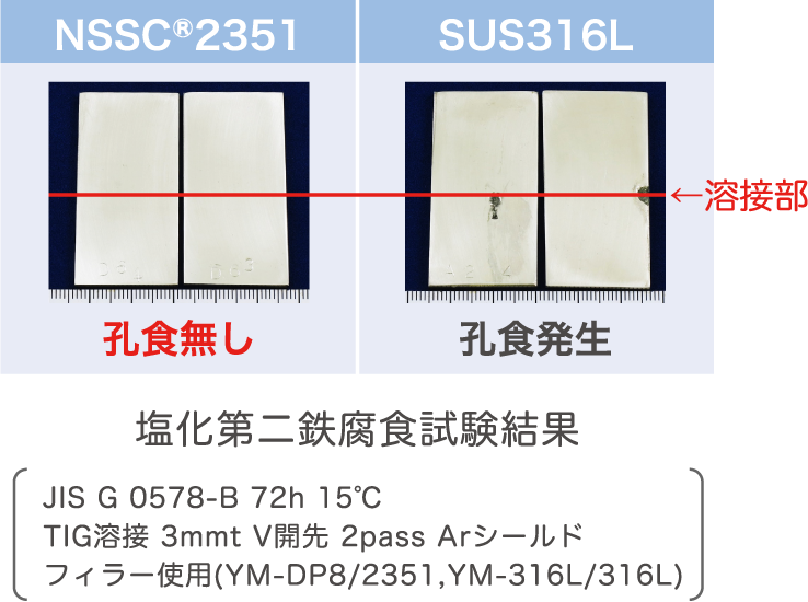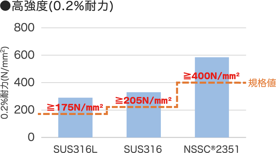 溶接部の耐食性はSUS316・316L同等以上。 - 強度はSUS316・316Lの約2倍。