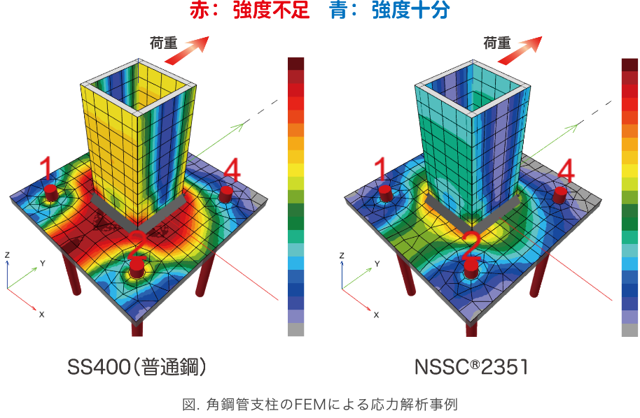 NSSC®2351の高強度を活用して最適設計すれば、鋼材重量の削減が可能となり、