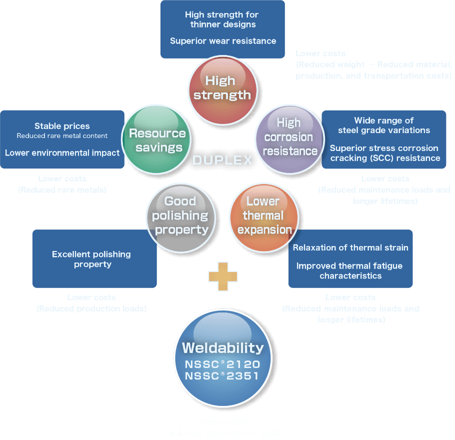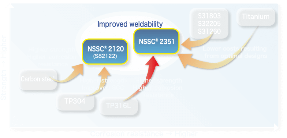 Features of NSSC’s original duplex stainless steel NSSC®2120 / NSSC®2351