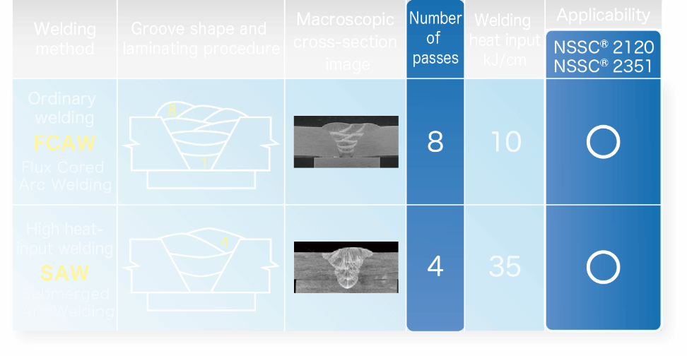 Because SAW high heat-input welding can be used, efficient welding is possible