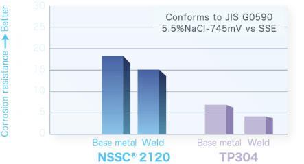 NSSC®2120 weld corrosion resistance is equivalent to or greater than that of TP304.