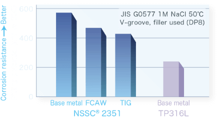 NSSC®2351 weld corrosion resistance is equivalent to or greater than that of TP316L.