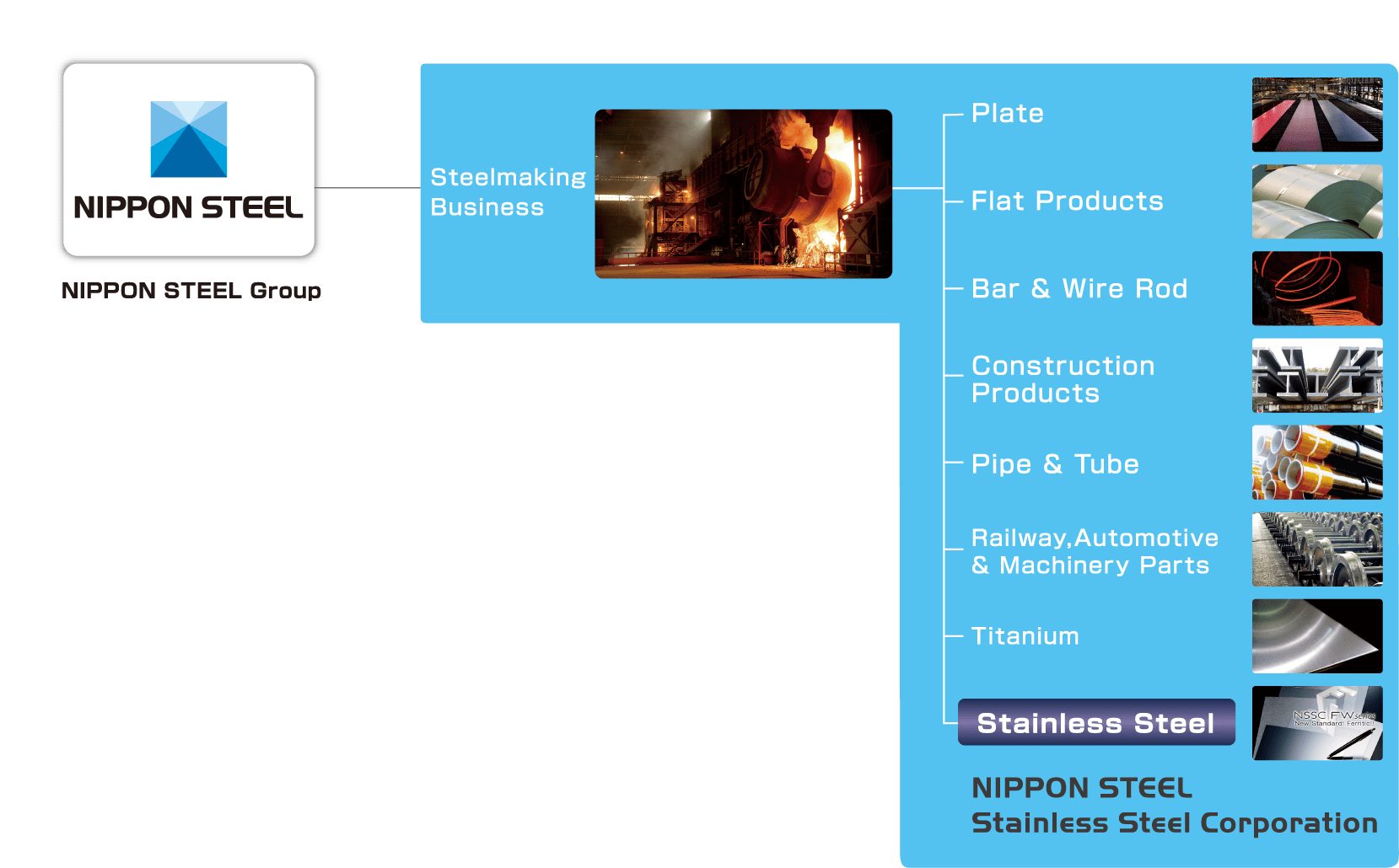 NIPPON STEEL Stainless Steel Corporation is a company specialized for stainless steel in steelmaking business of NIPPON STEEL group.