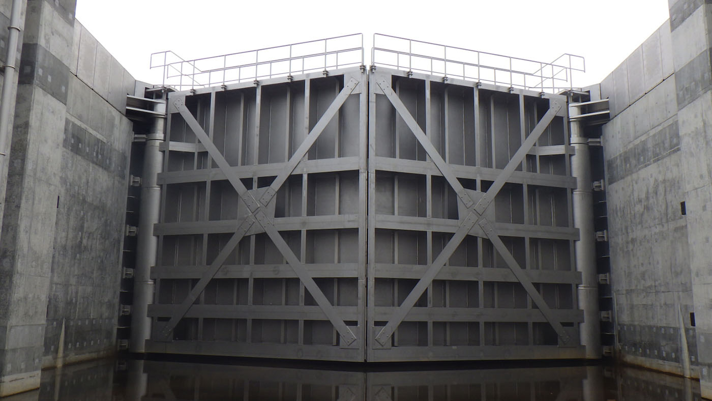 | 水門形式 | 観音開き方式マイターゲート 高さ8.5メートル、幅7.5メートル |