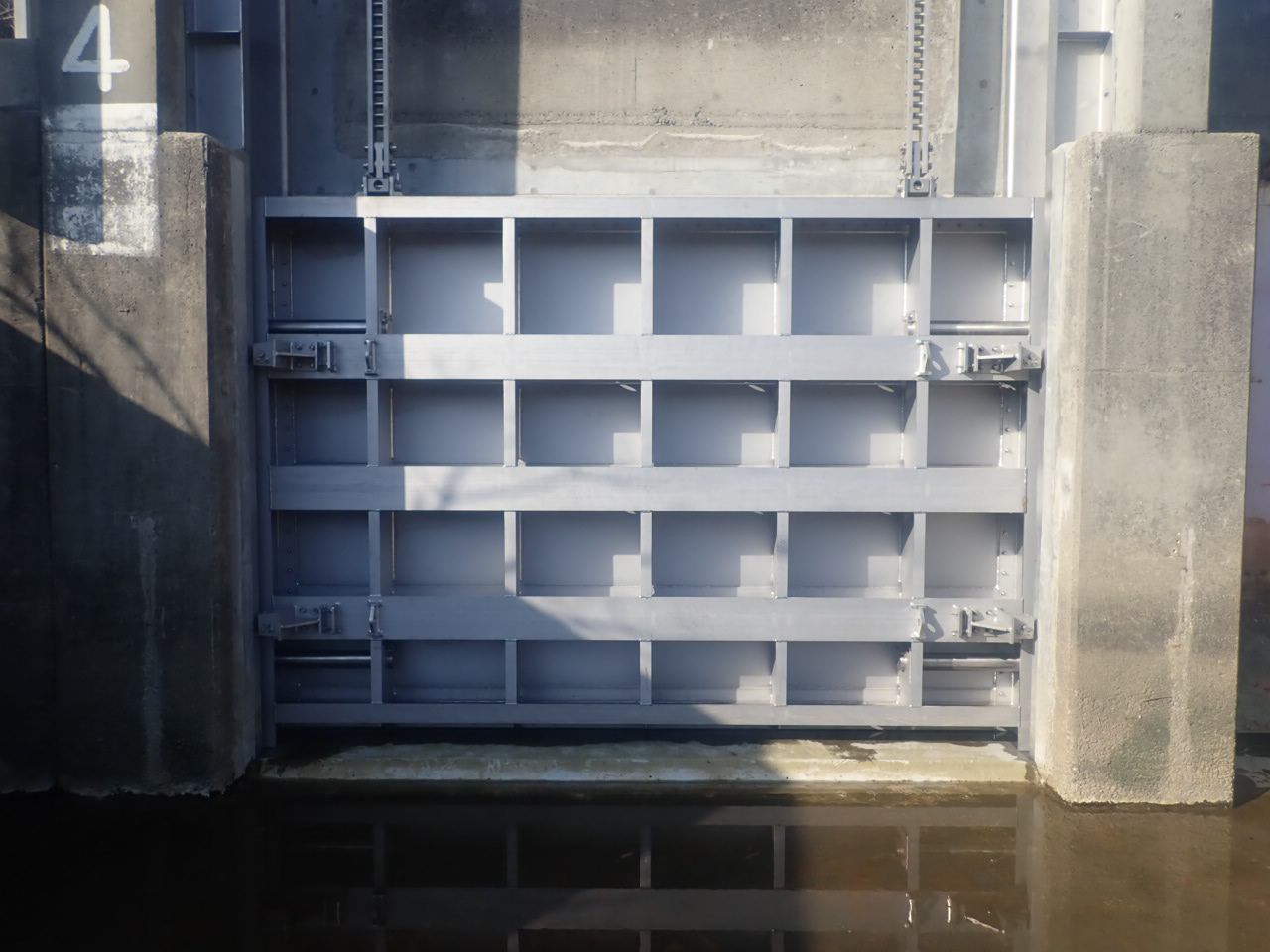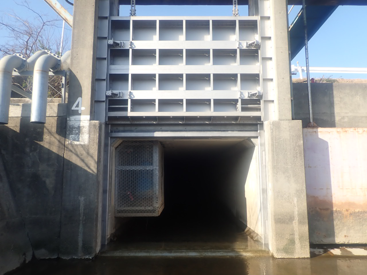 箕島ポンプ場(和歌山県有田市)は、供用開始から40年以上が経過し設備の老朽化が進み、普通鋼に塗装を施して製造されたゲート設備は、塗膜の剥離や鋼材の腐食による減肉・穴開きによる水漏れ等のおそれがあるなど、機能が十分に発揮できない事態が懸念されておりました。